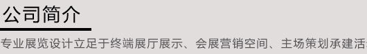 我司是一家致力于高端展臺(tái)、展館、展廳、專賣店設(shè)計(jì)、制作和搭建、施工于一體的專業(yè)性展覽公司,同時(shí)還被全國各個(gè)大型展會(huì)認(rèn)證為指定特裝搭建單位,公司在國內(nèi)外擁有一批高素質(zhì)人才,擁有專業(yè)的設(shè)計(jì)團(tuán)隊(duì),創(chuàng)意設(shè)計(jì)團(tuán)隊(duì)凝聚力強(qiáng)大,追蹤服務(wù)人員均達(dá)80人以上,我們擁有專業(yè)的技能,豐富的經(jīng)驗(yàn),貼心的服務(wù),我們多年服務(wù)各大展會(huì)及中國名展廣交會(huì)設(shè)計(jì)搭建、家具展展臺(tái)搭建,建材展展臺(tái)搭建,服裝展展覽制作,照明展展臺(tái)搭建、家電博覽會(huì)搭建等展覽設(shè)計(jì)搭建,用新穎的展覽設(shè)計(jì)和過硬的質(zhì)量得到了國內(nèi)外客戶的一致好評(píng)。公司總部位于廣州琶洲展館附近,展覽工廠面積達(dá)5000多平方米,在廣州、上海、北京等地均設(shè)有制作基地和服務(wù)網(wǎng)點(diǎn),展覽工程管理系統(tǒng)全程跟進(jìn),為客戶提供一體化綜合展示解決方案,打造高品質(zhì)的營銷型展臺(tái)。公司以專業(yè)化、集團(tuán)化、國際化為標(biāo)準(zhǔn),為提升客戶品牌而不懈努力... >>>更多